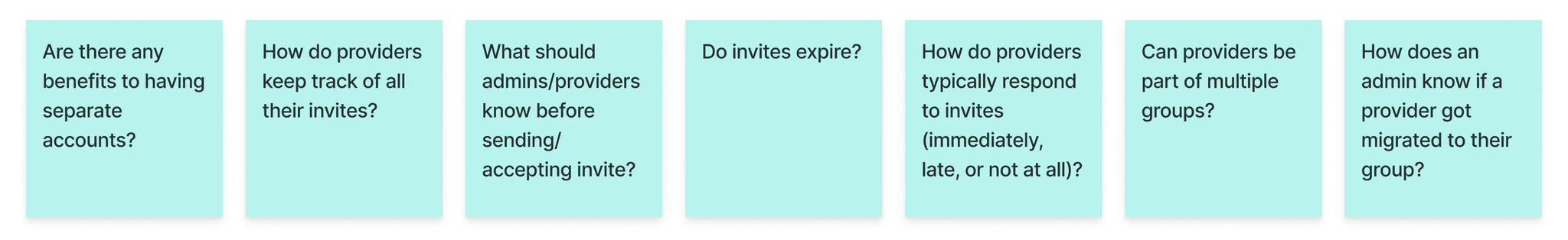 Understanding the logic behind provider invites proved more complex than expected. Clarifying how these backend conditions affected the user flow helped ensure the UI surfaced only relevant actions and messages for a clear and simple user experience.